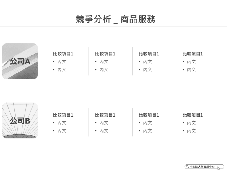 橫列圓方塊版 競爭分析-商品服務 PPT下載