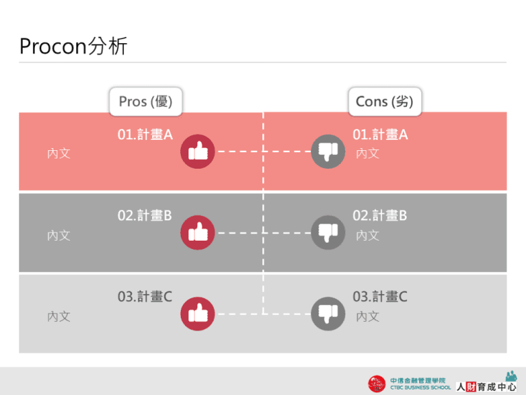 現代方格線紋版 Procon分析 PPT模板:從優勢及劣勢兩面,針對某課題或議題、計畫來進行客觀分析的分析手法。