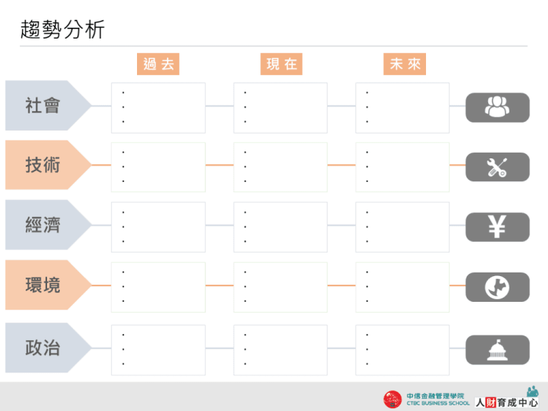 流程圖示版 趨勢分析 PPT模板:是可以讓自己的目標市場趨勢更加清楚明瞭的表格。